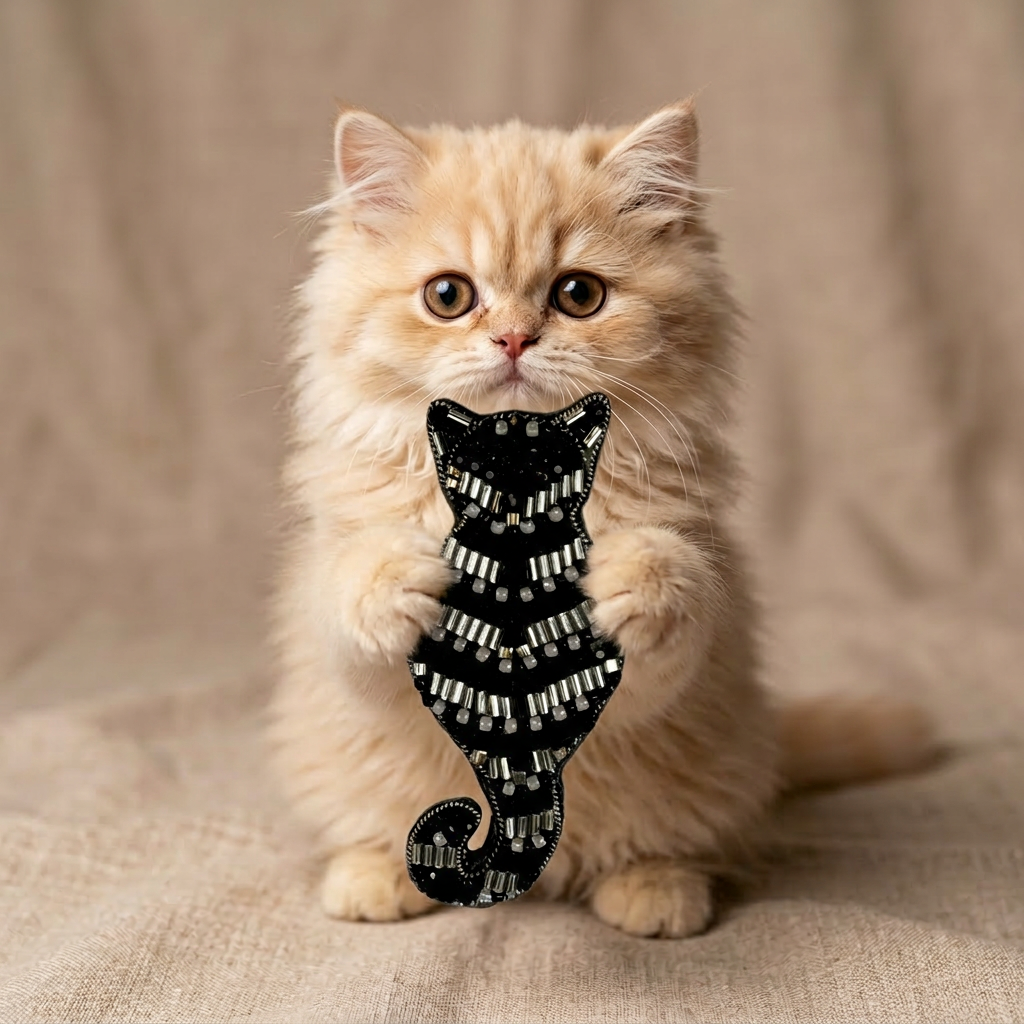 Sleek, tall, and unmistakably elegant — this handcrafted cat brooch captures a long-bodied feline in a graceful sitting pose viewed from behind.